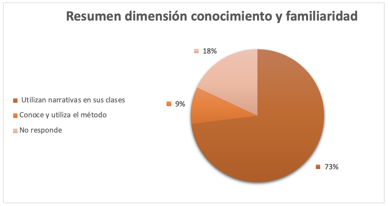 En resumen, los docentes han tenido experiencias previas con el Storytelling, pero todavía no lo convierten en una metodología formal (storytelling) porque no necesariamente siguen los pasos estructurados ni el objetivo pedagógico definido que caracterizan a esta técnica.